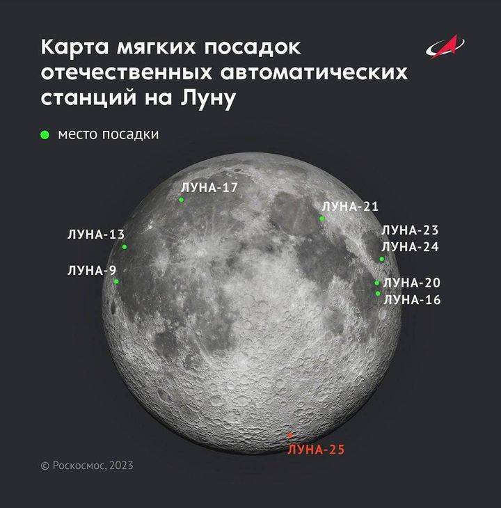 今年7月14日,俄罗斯科学院航天研究所高级研究员纳坦·艾斯蒙特表示,按照原目前计划,俄罗斯“月球-25”号探测器将于8月11日在东方航天发射场由一枚带有佛盖特上面级的联盟2.1b火箭发射升空,并于8月21日前后降落于月球南极附近,计划着陆点是位于博古斯拉夫斯基环形山火山口以北,计划备用着陆点位于曼齐宁环形山的西南处。