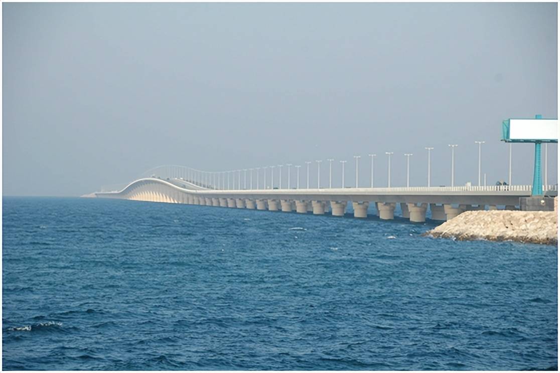 第九:法赫德国王大桥,又名巴林道堤桥,位于波斯湾中的巴林湾,这是一座国际桥梁,连接了巴林和沙特间的海峡,全长约26公里,其中填海造堤部分约10公里,桥梁部分15公里,于1986年11月通车,耗资约12亿美元。被认为是西亚第一桥。