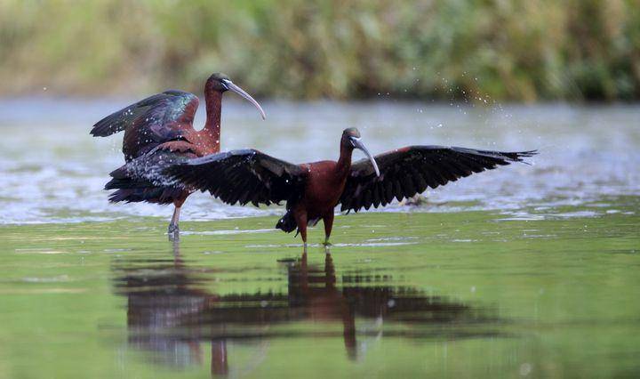 彩鹮和朱鹮都是受保护的鸟类,都比较稀有,前些年彩鹮这种鸟类在我国一度被宣布为野外绝迹,因为有很长的时间没有在野外看到过它,但是近两年这种鸟类又在我国出现了,就在今年的7月30日,有观鸟爱好者在重庆市梁平区双桂湖国家湿地公园就拍摄到了一只正在水中觅食的彩鹮。这也是有记录以来首次在重庆范围内发现彩鹮的身影。