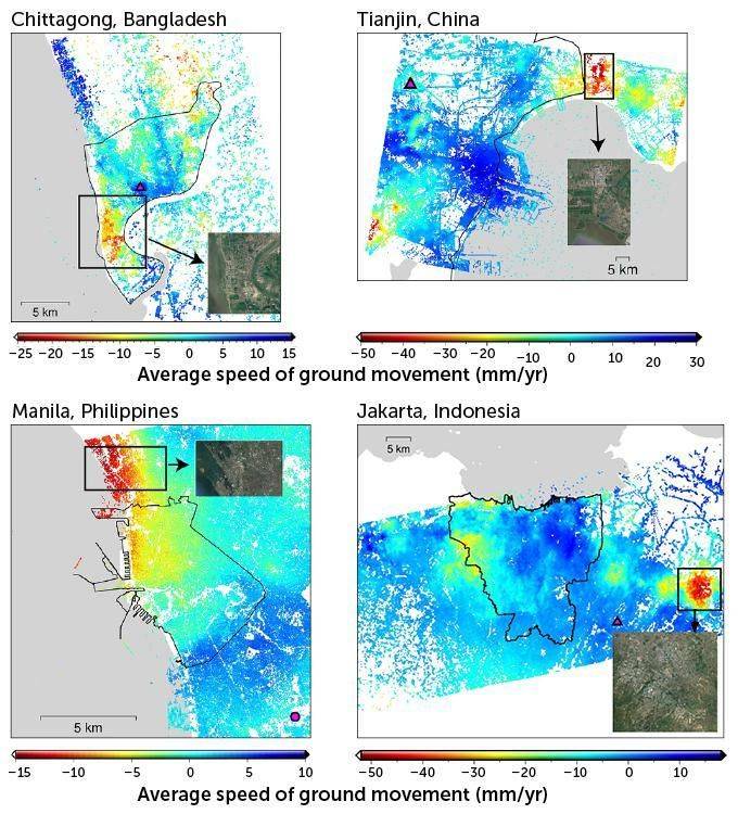 2022年4月16日,《地球物理研究快报》上刊载了一篇来自美国罗德岛大学的一个研究报告,其中详细介绍了南极洲之外各大洲的99个沿海城市地面沉降情况,该校的地球环境科学研究者们利用GPS卫星高程定位以及其他一些手段,给出了这些城市的地面沉降情况和趋势,其中的数据显示我国的天津市地面沉降幅度最大。
