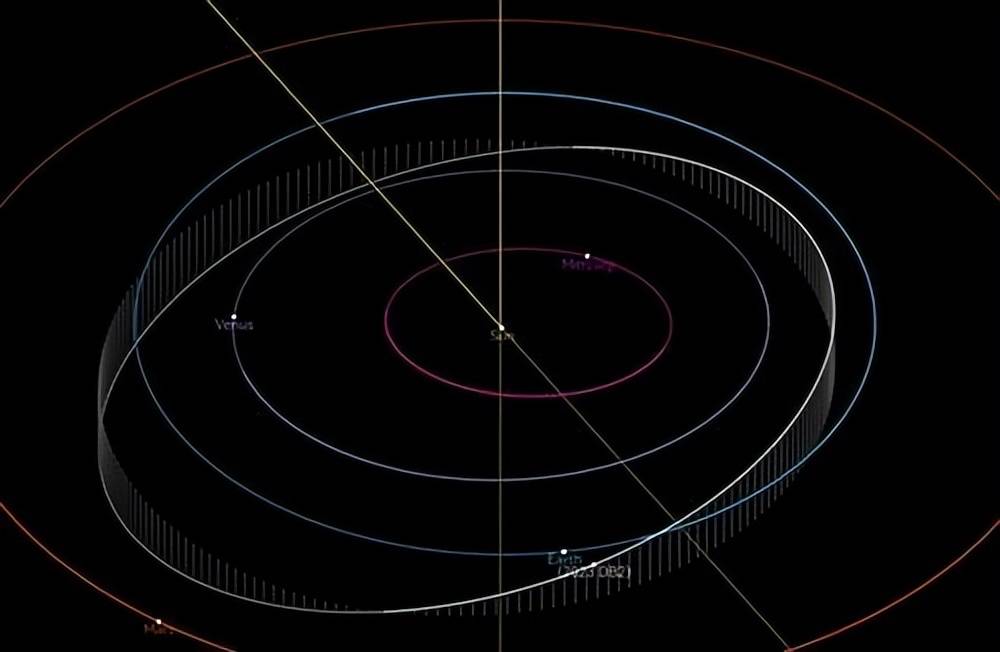 新疆天文台观测到的2023 DB2小行星绕太阳运行一周的时间大约为1.06年,绝对星等为21.76等,直径大约200米。