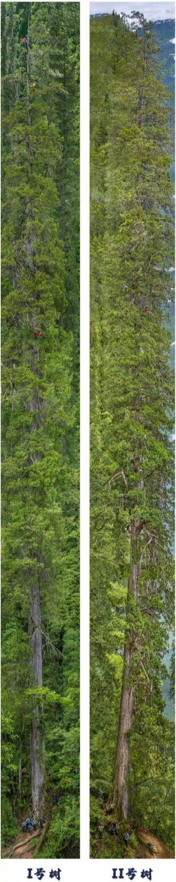 而这棵超百米高的西藏柏木的发现恰又说明了这种树木可以长得异常高大,现其已成为仅次于北美红杉的世界第二高树种,刷新按树种排名的世界最高树木的列表。两图为今年5月份拍摄的这棵102.3米高的西藏柏木树的等身照。