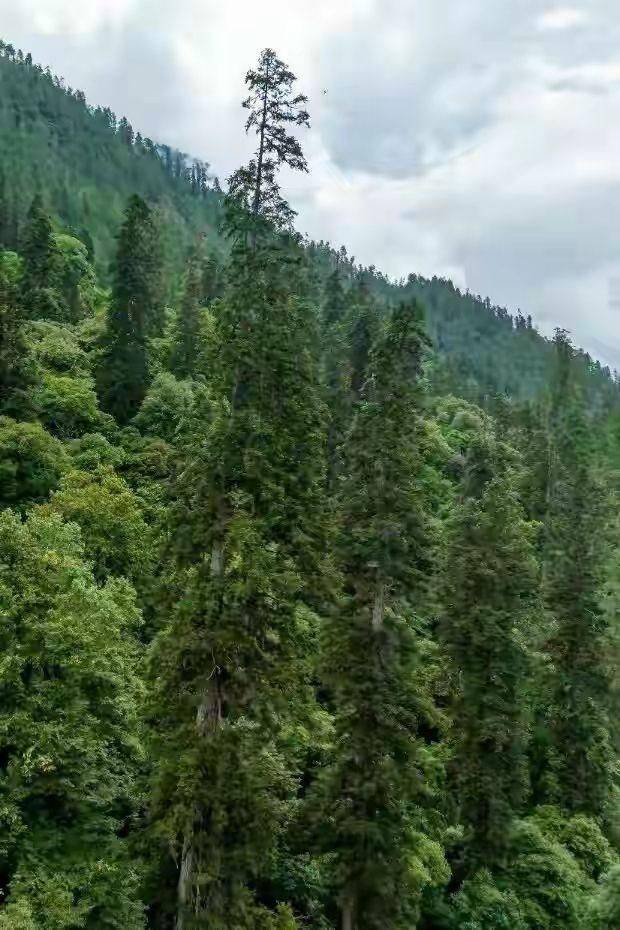 西藏柏木主要存在于喜马拉雅山南缘和我国青藏高原东部及横断山区一带,是国家一级保护植物,这种树木还有多个名字,如藏柏、干柏、喜马拉雅柏、冲天柏、泯江柏等,它是松杉目柏科的一种多年生乔木,一般的高度在20~50米之间,像这种高达102.3米的西藏柏木十分少见,它之所以长这么高主要得益于受保护型的地理环境条件,比如生长在山谷之中,四周有山体阻挡,雷电和强风都损伤不了它,那它就能长得很高。下图就是该树的生长环境。