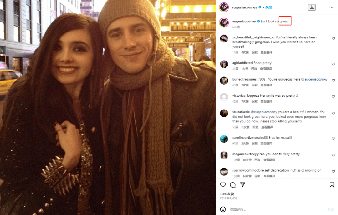 比如Eugenia,她在ins发的第一张照片,说的是自己糟糕透了。