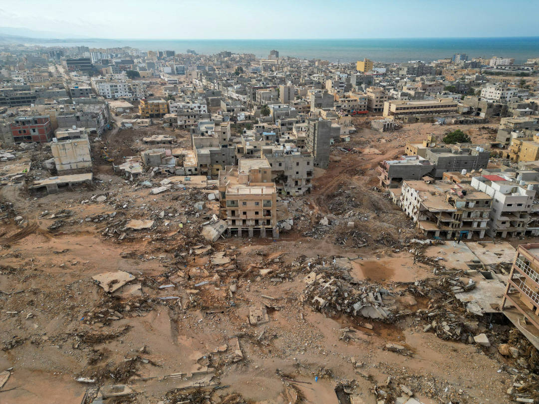 当地时间2023年9月20日,利比亚德尔纳,当地建筑严重受损。
