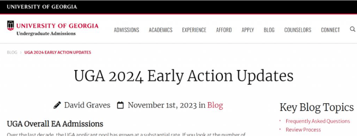 佐治亚大学发布的早申数据则显示,在 2023-2024 申请季,共计有 26,830 人通过 EA 申请了佐治亚大学,比去年增加了 3%,大约增加了 800 名学生。值得注意的是,据校方校董 David Graves 透露,今年无论是 EA 轮次还是 RD 轮次,录取竞争都比往年更加激烈。