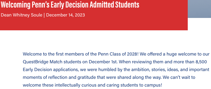 今年宾大只公示了有超过8500人提交了早申申请,比去年略有上涨。其它录取数据则依旧没有公布。