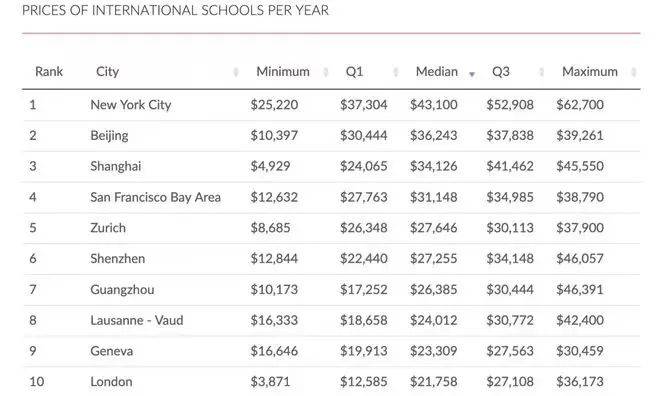 根据International Schools Database统计的“2022全球国际教育费用排行榜”,全球学费最贵的10个城市,深圳国际学校学费价格仅次于北京和上海,位于全国第三。