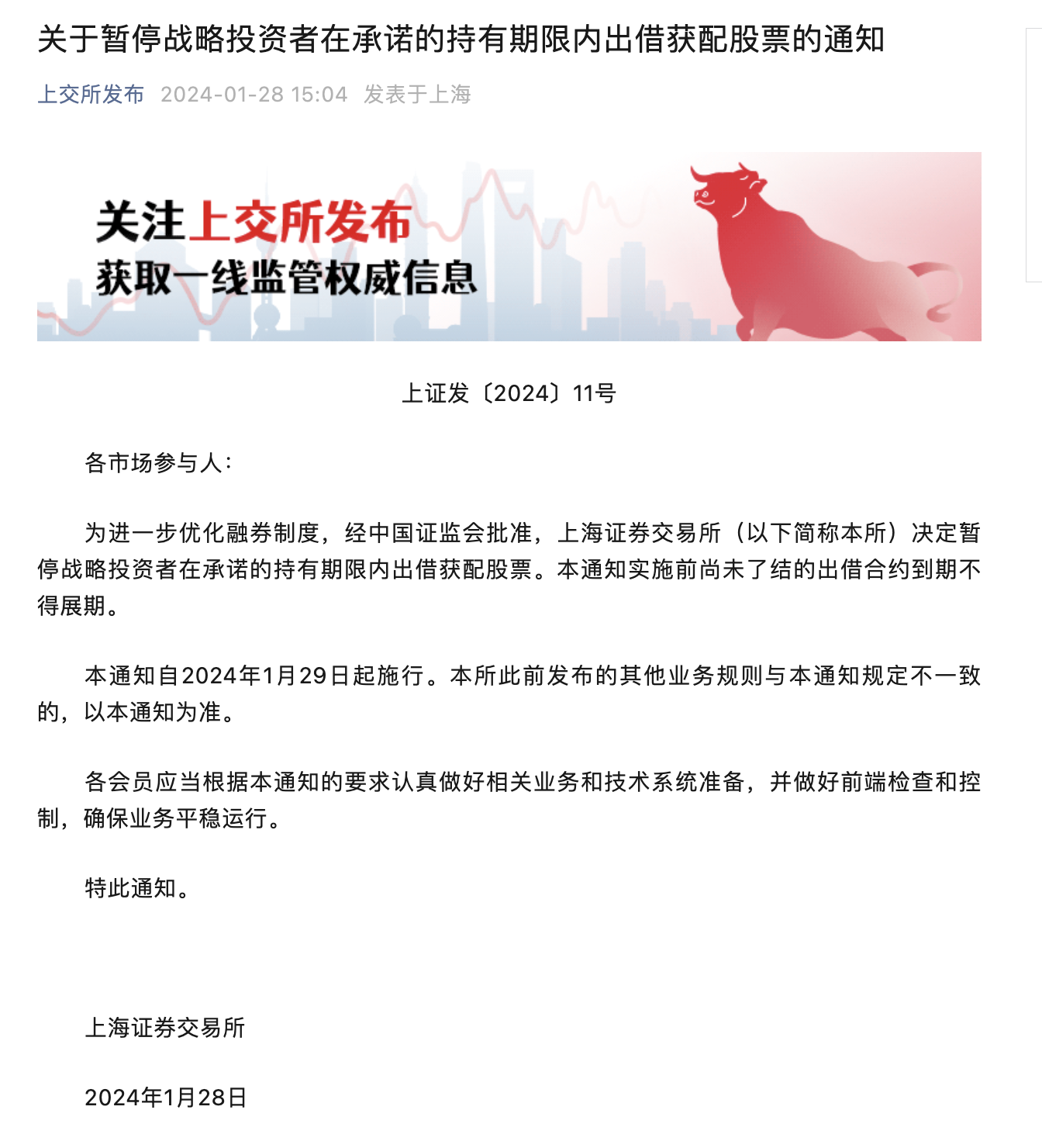 重磅!证监会官宣:全面暂停限售股出借!上交所、深交所紧急通知