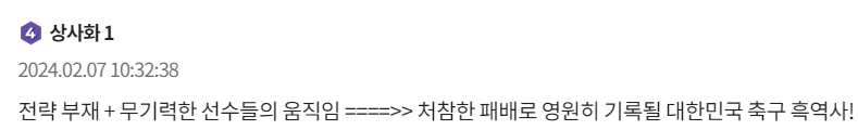 对于韩国队倒在决赛门口,且败给冷门约旦队,韩国网友在社交媒体上热议,表达失望不满之情。