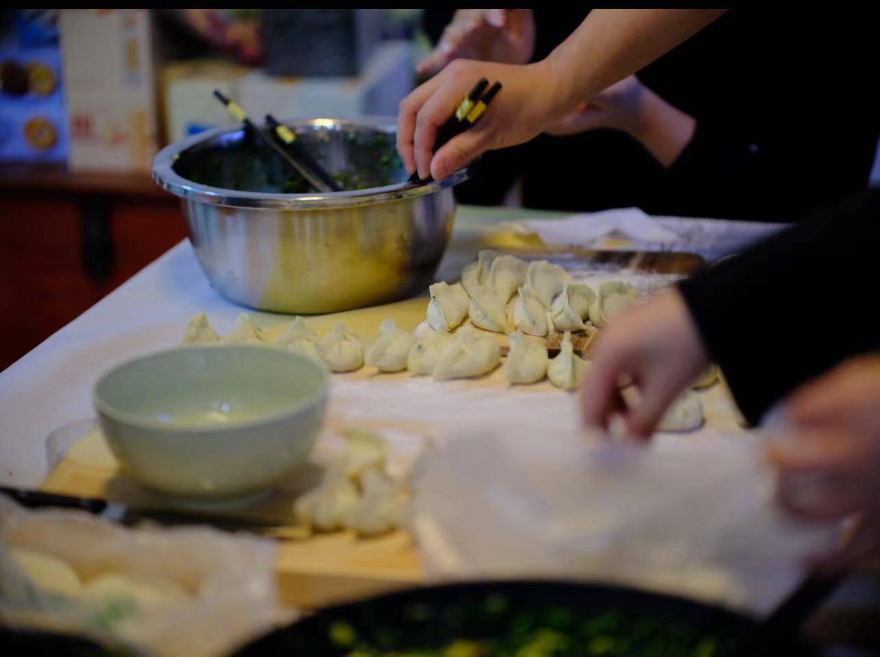 39个春节搭子在怀柔民宿包饺子。讲述者供图