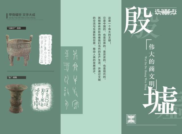 基本陈列将长期对公众开放,展示几代殷墟考古人接力前行、不断求索,取得了一次又一次重要发掘成果,对夏商都邑的深入研究,为不同时期不同区域的商文化研究提供了对比标尺。众多首次亮相的各类珍贵文物再现了商朝繁盛的城市文明,完善的礼乐文明、发达的青铜文明、灿烂的文字文明以及高超的科技文明。全面系统地展现了我国商代晚期都城的风貌,让全世界看到一个中华文明早期发展阶段最为辉煌的时代——大邑商。