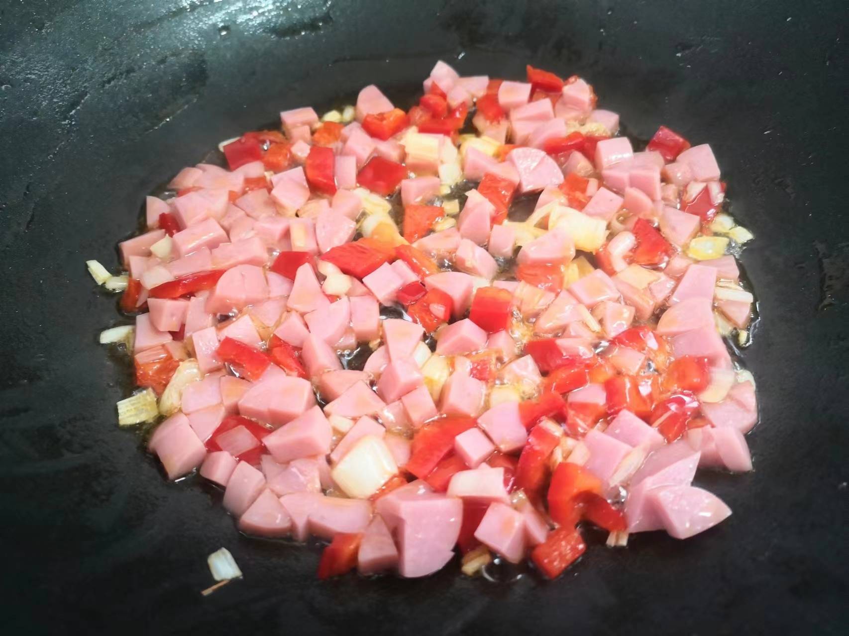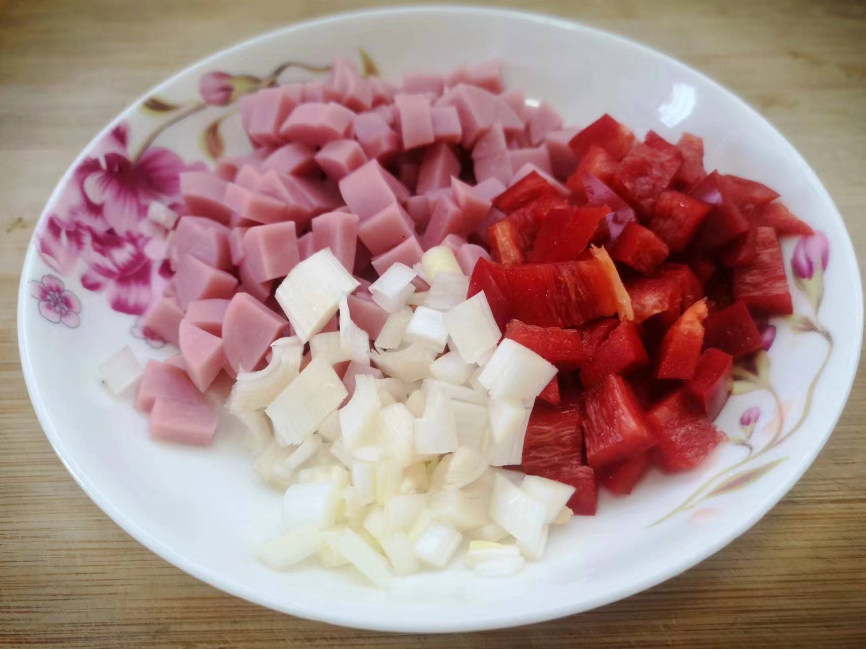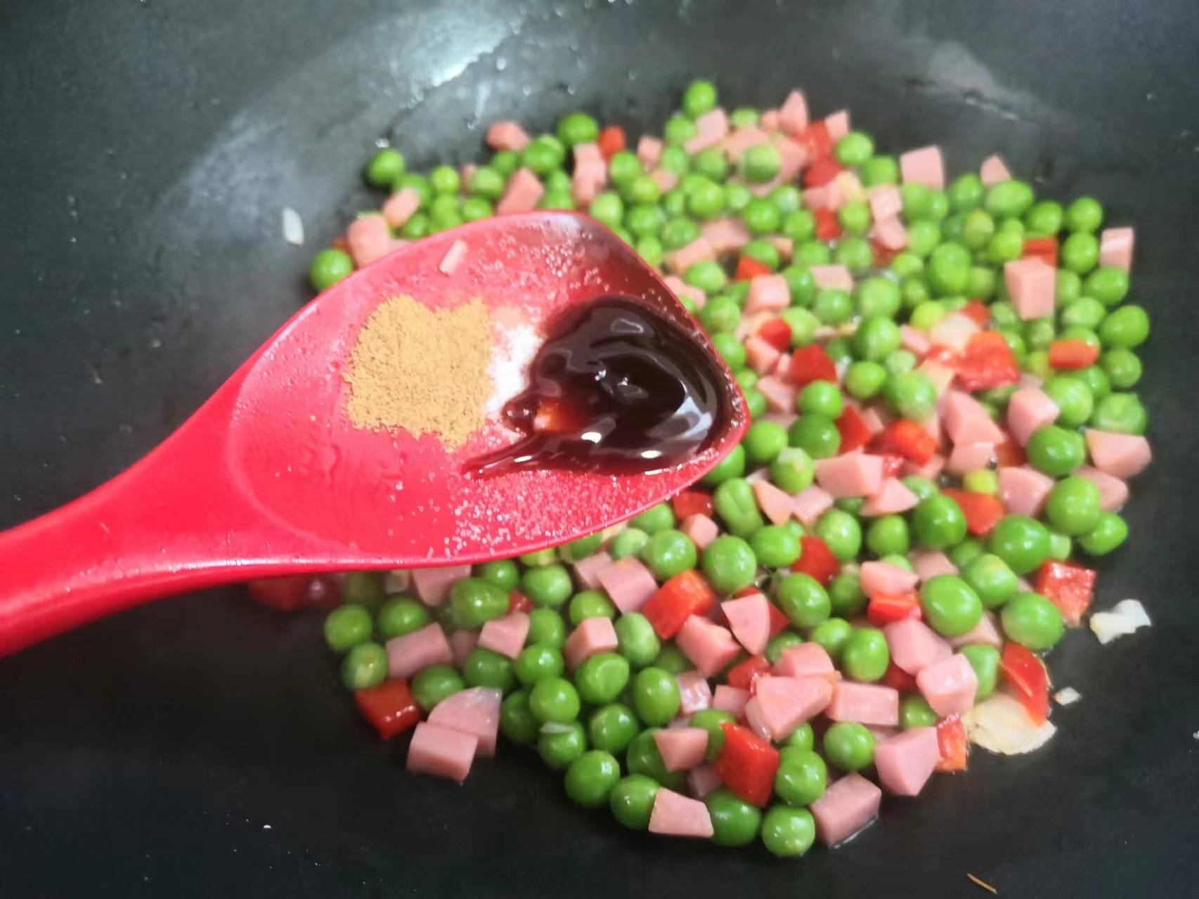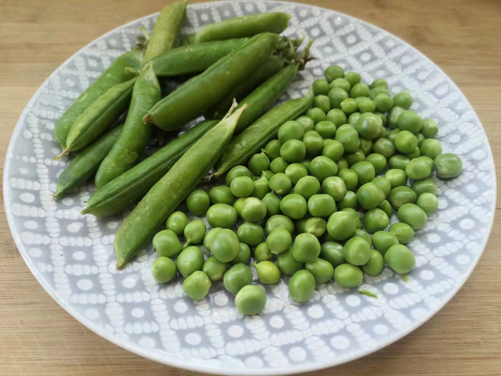 众所周知,现在正是吃豌豆的季节,豌豆特别鲜嫩,豌豆口感清甜,富含钙质、B族维生素、维生素C和胡萝卜素等。豌豆也是非常友好的一种蔬菜,豌豆可以清炒,可以水煮,可以用来做各种点心。前几天朋友送很多豌豆,一个个豆荚饱满,剥壳后的豌豆颗粒圆润,颜色鲜绿,看着很是让人喜爱。豌豆的做法有很多种,不过,如果想要下饭的话,把豌豆和火腿搭配一起炒最好吃,大家可以试试这样炒豌豆着吃,好看又好吃,做法还简单。而且豌豆与火腿的搭配,更加提高了蛋白质的吸收利用率。现在,我把这道“豌豆炒火腿”的家常菜做法分享给大家,祝朋友们身体健康!