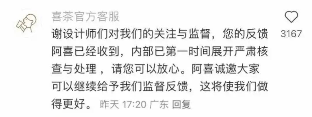 3月22日,针对推出的联名周边在二手平台被倒卖,喜茶官方回应称,表示已收到相关反馈,并正在内部进行核实;并一旦发现若员工有此类行为,将会对其进行处罚和罚款。