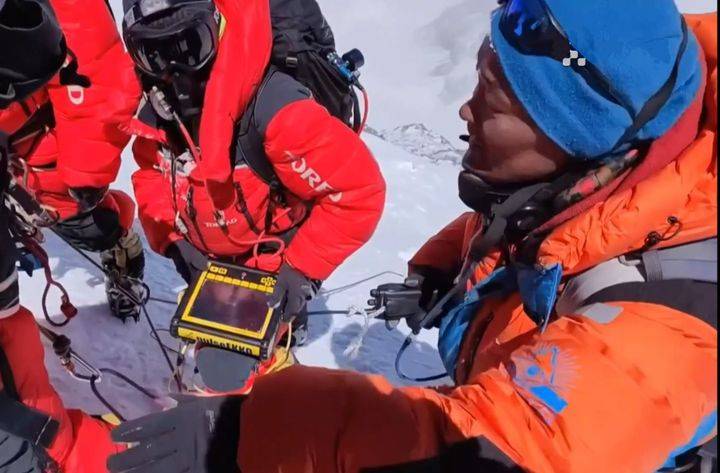 这是一个比三层楼还高的高度,珠峰顶端有着比三层楼高还厚实的冰雪,这是一个让人惊讶也从未有过的数据。