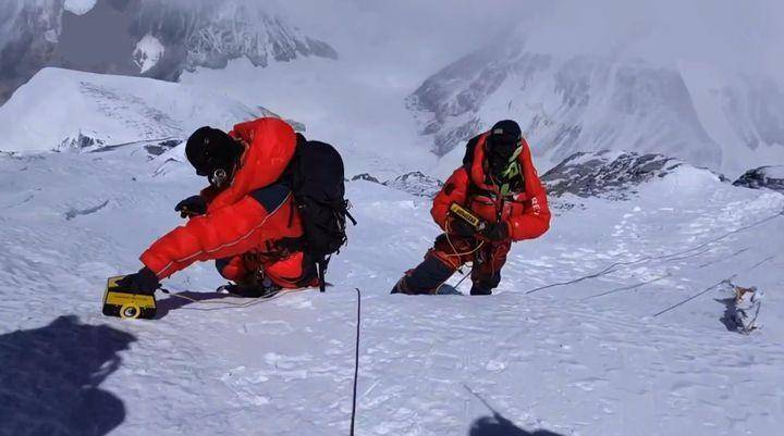 那到底是怎么一回事呢?为何这次测量出来的积雪厚度差别那么大?其实更大的原因是由于测量方式的不同。这次的测量结果是第二次青藏科考队于2022年4至5月测出的,考察者们利用1000MHz一体化冰雪测厚雷达沿珠峰顶部裸露基岩处开始测量,一直测量到珠峰顶端,这种方法是剖面测量法。