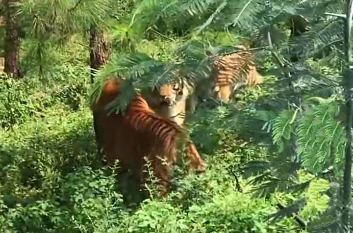 那么“云南玉溪一男子上山采菌遇到三只老虎打架”事件中男子看到的三只老虎是野生的孟加拉虎和印支虎吗?其实并不是!云南当地已经对此事辟谣了,该事件的视频发布者其实是在造谣,其视频拍摄的地点是在云南野生动物园内的老虎园区内。