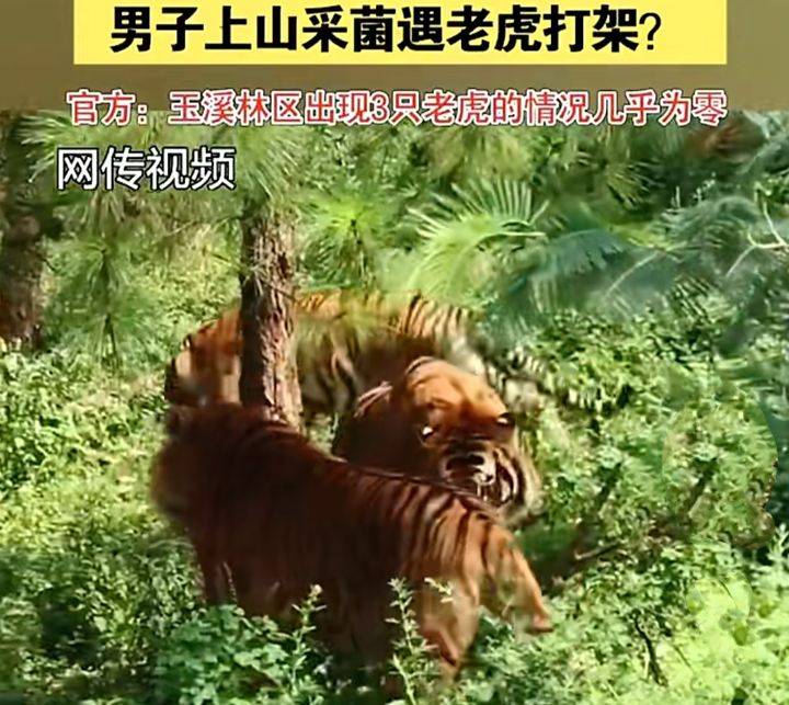 针对男子视频所说的野外采菌发现三只老虎打架的事件,视频发布后,玉溪林草局还组织各县区林草部门对视频内容可能涉及的老虎线索进行了市、县、乡、村四级排查,并未发现视频中的这个地点等线索,后来相关专家判定认为在玉溪林区出现3只老虎的概率基本为零。