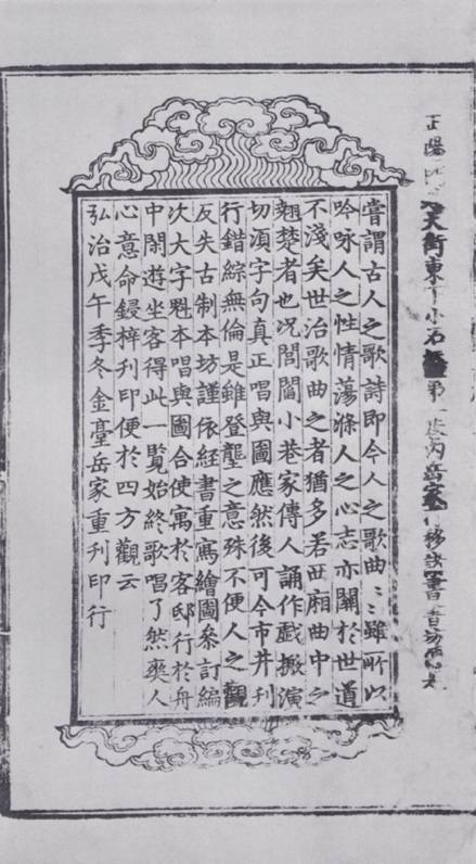 明弘治十一年金台岳氏刊《奇妙全相注释西厢记》内文首页(据北京图书馆编著《中国版刻图录》)