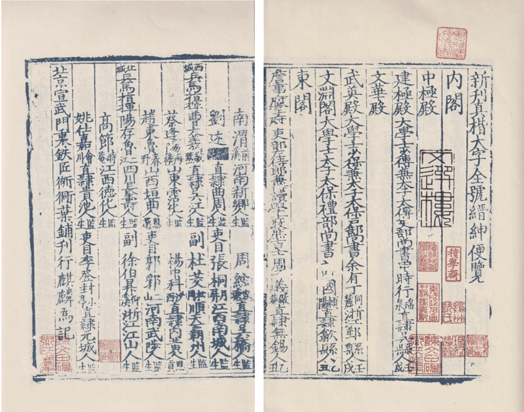 双峰书屋、三槐堂、文盛堂、近文斋、同升阁、善成堂书铺、文盛堂、琉璃厂半松居士、琉璃厂、五柳居、二酉斋、龙成阁、老二酉堂、正文斋、有益堂、奎文堂、宝经堂、藜光阁、宝书堂、业书堂、文光楼、二酉堂、来鹿堂、文澜堂、酉山堂、荣禄堂、会经堂、会文斋、荣锦书屋、镜古书庄、文宝堂、宏道堂、文贵堂、鸿宝斋、文成堂、文锦斋、荣华堂、聚珍堂、文友堂、翰文斋、来熏阁、松筠阁、文奎堂、直隶书局、书业公司、修绠堂、开明书局、开明书局、文禄堂、通学斋、藻玉堂、文殿阁、修文堂、富晋书社、邃雅斋、北直文昌会。